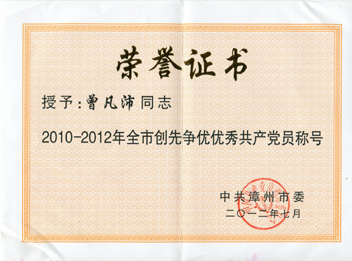 | 創(chuàng)先爭優(yōu)優(yōu)秀共產(chǎn)黨員(曾凡沛) | 漳州市委 | ||