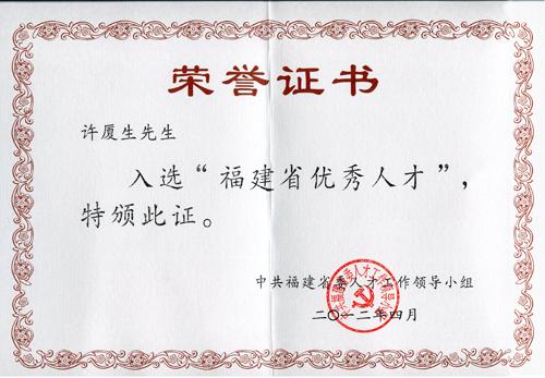 | 福建省優(yōu)秀人才(許廈生) | 福建省人才工作領(lǐng)導(dǎo)小組 | ||
