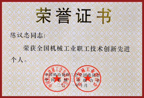 | 個人 | 第二屆機械工業(yè)高技能人才優(yōu)秀論文(技能類)二等獎(陳崇明 顏楊豐) | 中國機械工業(yè)企業(yè)管理協(xié)會,中國機械職業(yè)技能鑒定指導(dǎo)中心 | |